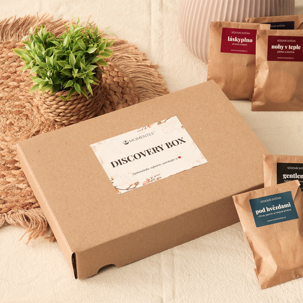 Každý má jiné oblíbené vůně - a teď si můžete sestavit vlastní voňavý box přesně podle sebe. Discovery Box: Sestavte si vlastní obsahuje 6 čajových svíček, které si vyberete z nabídky aktuálních vůní Momentee. Perfektní, pokud chcete kombinovat podle nálady, ročního období nebo prostě jen zkusit něco nového.