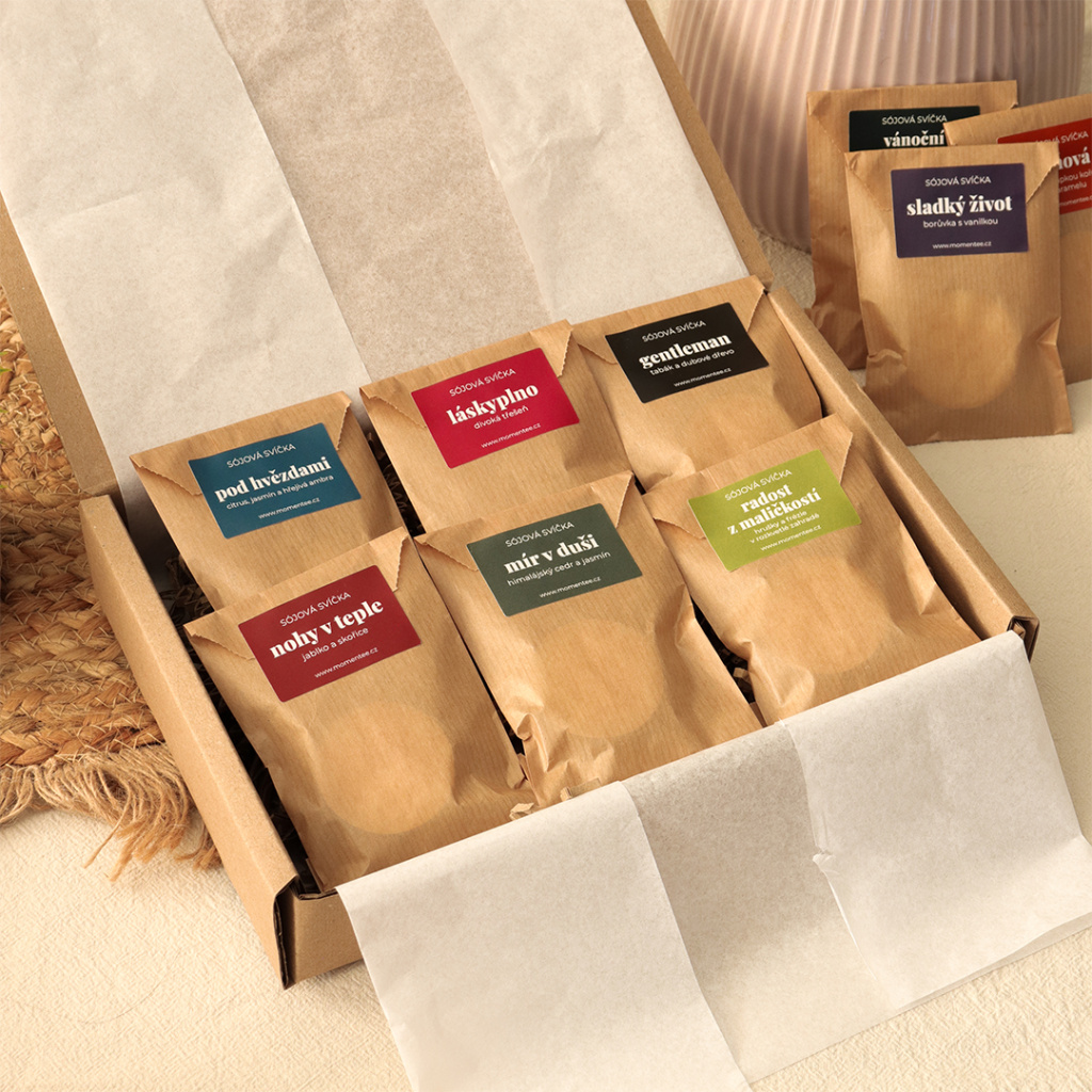 Vše zabalíme do elegantního boxu, který potěší i jako dárek. Stačí zapálit a užívat si vaše momenty.